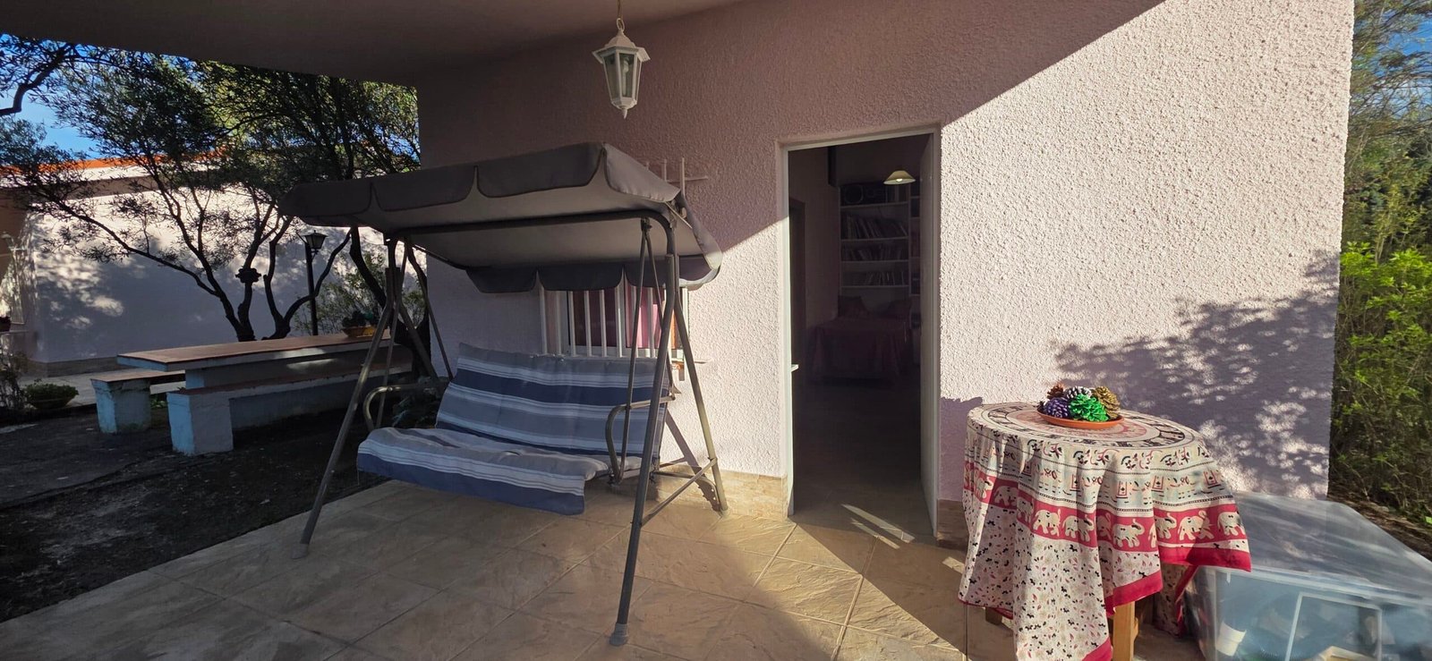 La vivienda principal cuenta con un acogedor salón que incluye una chimenea perfecta para disfrutar de las noches de invierno. Con tres dormitorios y un baño, este espacio es ideal para familias que buscan confort y funcionalidad. La cocina independiente, que se conecta con un porche exterior acristalado, es perfecta para disfrutar de comidas al aire libre. Además, hay un segundo baño conectado al porche, facilitando el acceso desde el jardín.